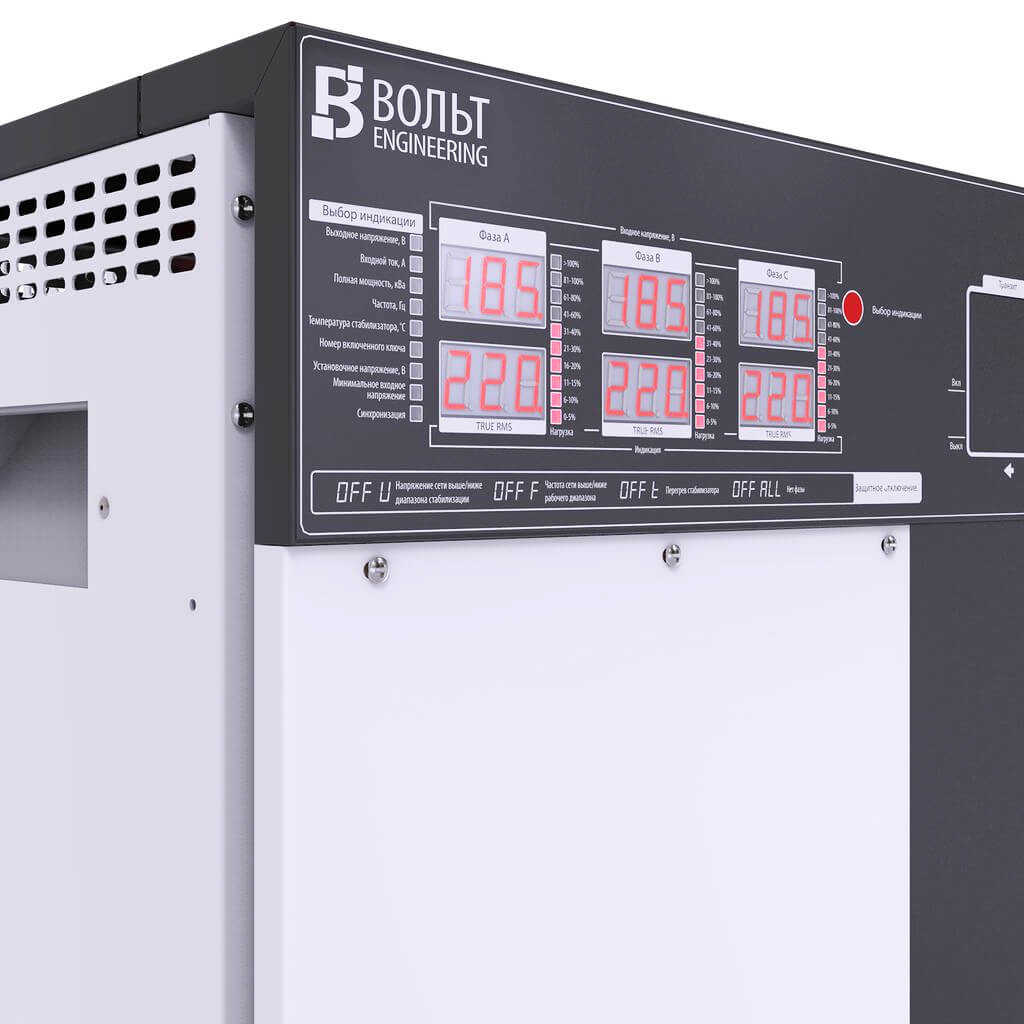 Стабилизатор напряжения Вольт Engineering Герц Э 16-3/25 представляет собой эффективное решение для устранения скачков и просадок напряжения в трехфазных электросетях, как в бытовом, так и в промышленном применении. Устройство отличается двухрежимным функционированием, позволяя выбирать между стабилизацией линейного напряжения 380/400В, что актуально для промышленных нужд, и фазного 220/230В, что идеально подходит для использования в домашних условиях. Такой подход делает стабилизатор универсальным инструментом для защиты электрических систем в самых различных условиях.