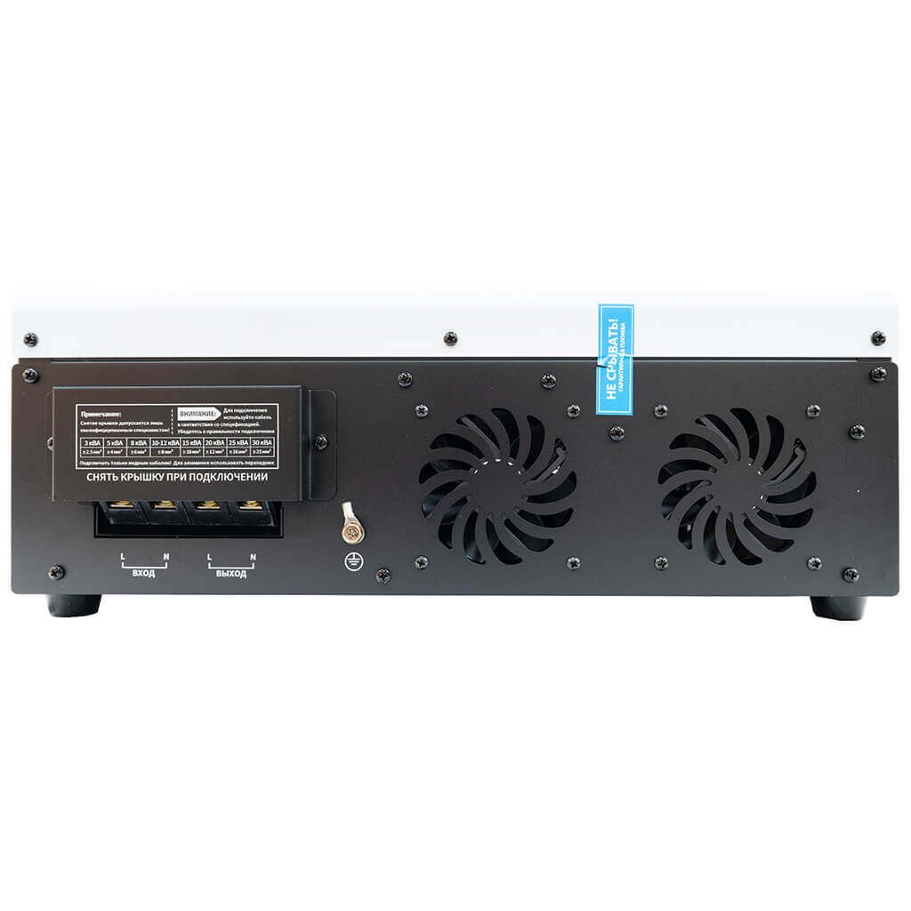 Стабилизатор Voltek ТСН-10кВт оснащен комплексом систем, обеспечивающим надежную защиту как потребителей, так и самого стабилизатора от любых нештатных ситуаций, и рассчитан на непрерывную круглосуточную работу в условиях больших по значению и длительности отклонений напряжения от номинального значения.