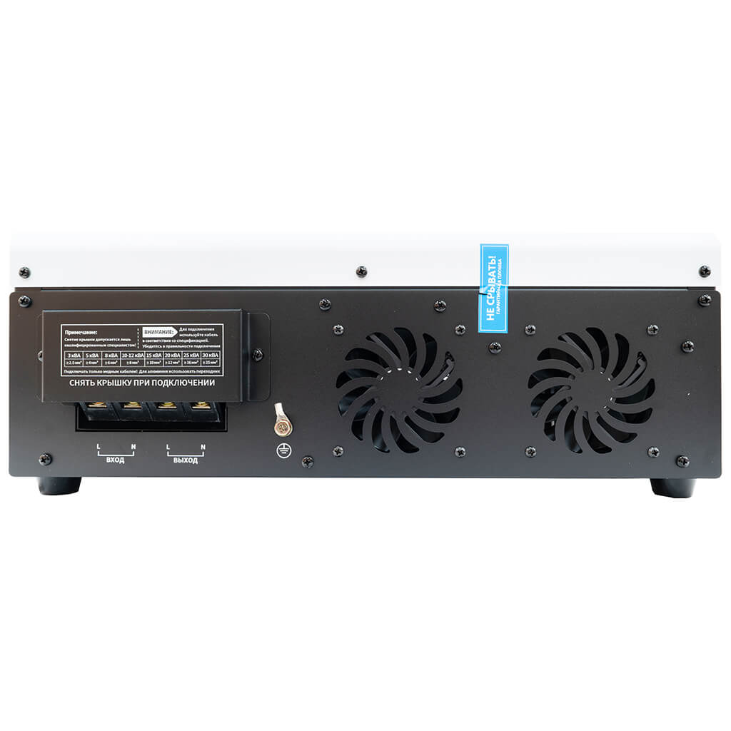 Стабилизатор Voltek ТСН-12кВт оснащен комплексом систем, обеспечивающим надежную защиту как потребителей, так и самого стабилизатора от любых нештатных ситуаций, и рассчитан на непрерывную круглосуточную работу в условиях больших по значению и длительности отклонений напряжения от номинального значения.